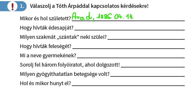 2. Az elolvasott életrajz alapján oldjátok meg ÖNÁLLÓAN a MF. 13. oldalának 1. és 2. feladatát! Ha mindenki elkészült, ellenőrizzétek közösen!